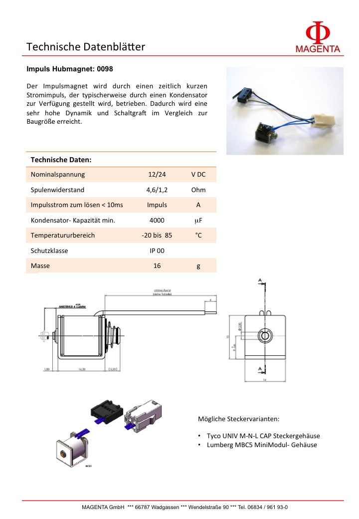 Home → Datenblätter / Downloads → Typ: 0098 Impuls- Hubmagnet