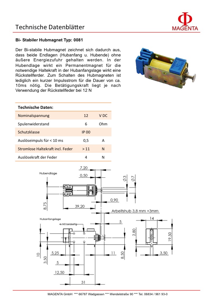 Typ: 0081 Bi-Stabiler Hubmagnet